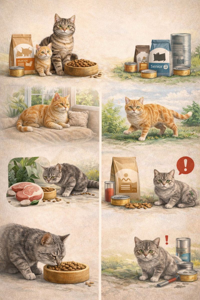Первое, что необходимо учитывать при выборе корма, — возраст кошки. Котята нуждаются в высококалорийном питании с повышенным содержанием белка и минералов для правильного роста и развития. Взрослым кошкам важно поддерживать баланс энергии и питательных веществ, а пожилым питомцам требуется более щадящий рацион с акцентом на поддержку суставов, почек и сердца.